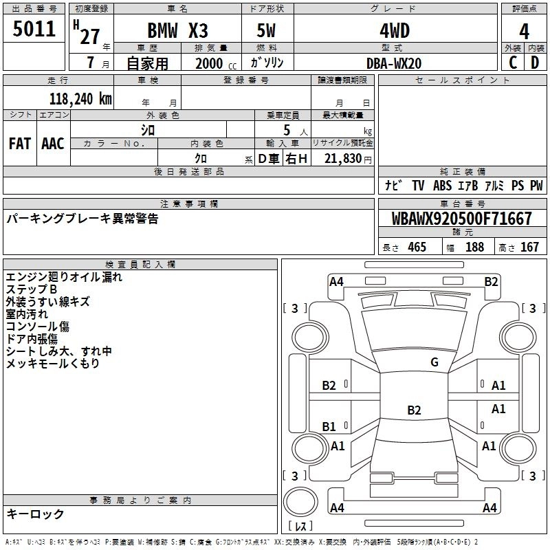 BMW X3 2015 г., лот № 5011