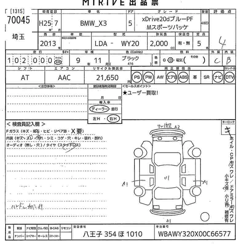 Год выпуска2013 Пробег 102 000 км КузовWY20 КомплектацияXDRIVE20D BLUE PF_M SPORTS PACKAGE
