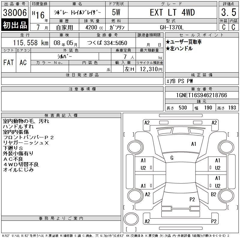 CHEVROLET TRAIL BLAZER 2004 г., лот № 38006