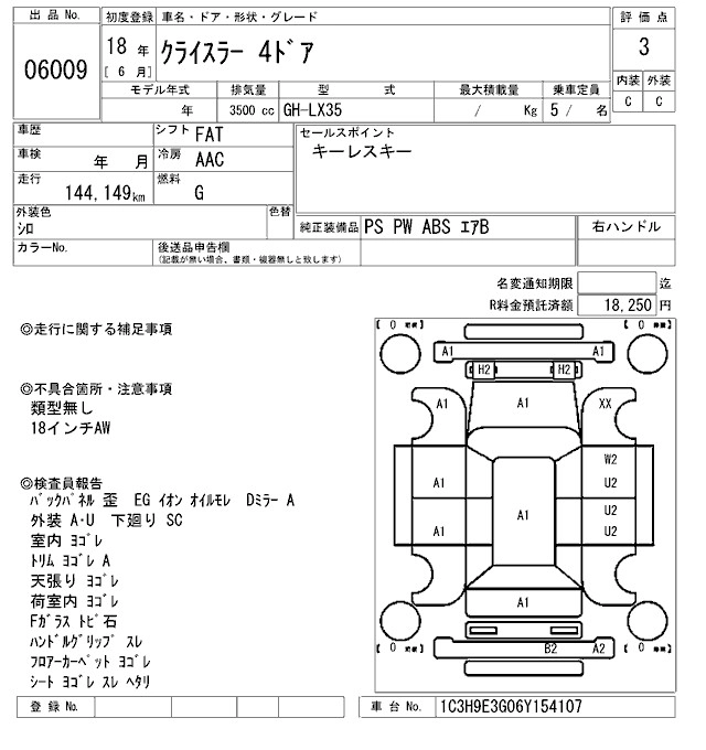 Статус продан Лот 6009 Аукцион ARAI Sendai Дата аукциона 23.01.2026