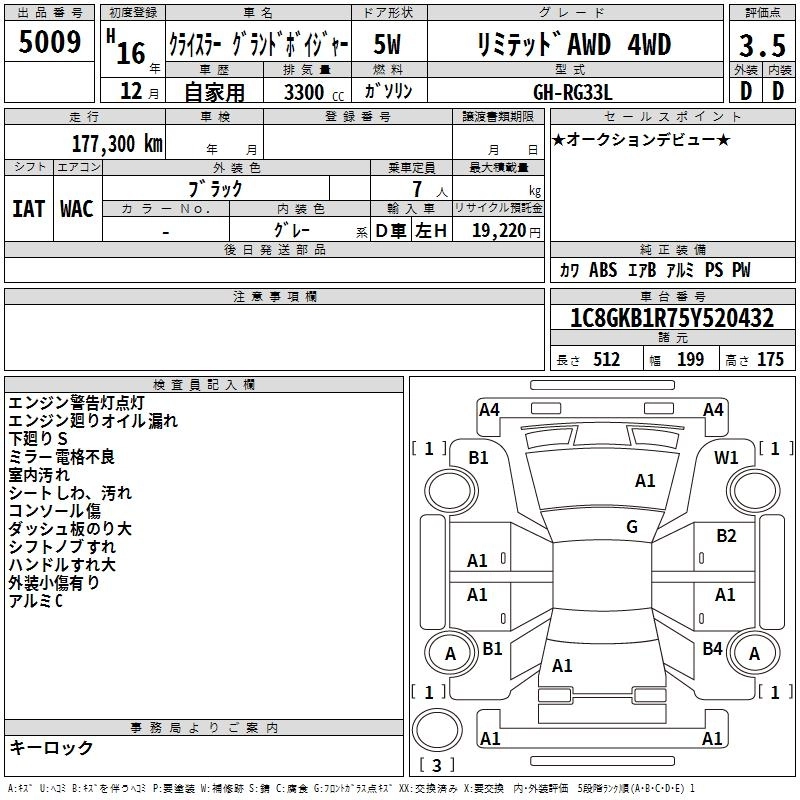 CHRYSLER GRAND VOYAGER 2004 г., лот № 5009