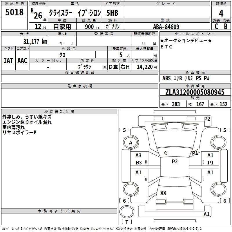 CHRYSLER YPSILON 2014 г., лот № 5018