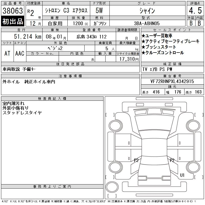 Статус выставлен на аукцион Лот 38063 Аукцион CAA Chubu Дата аукциона 05.11.2025