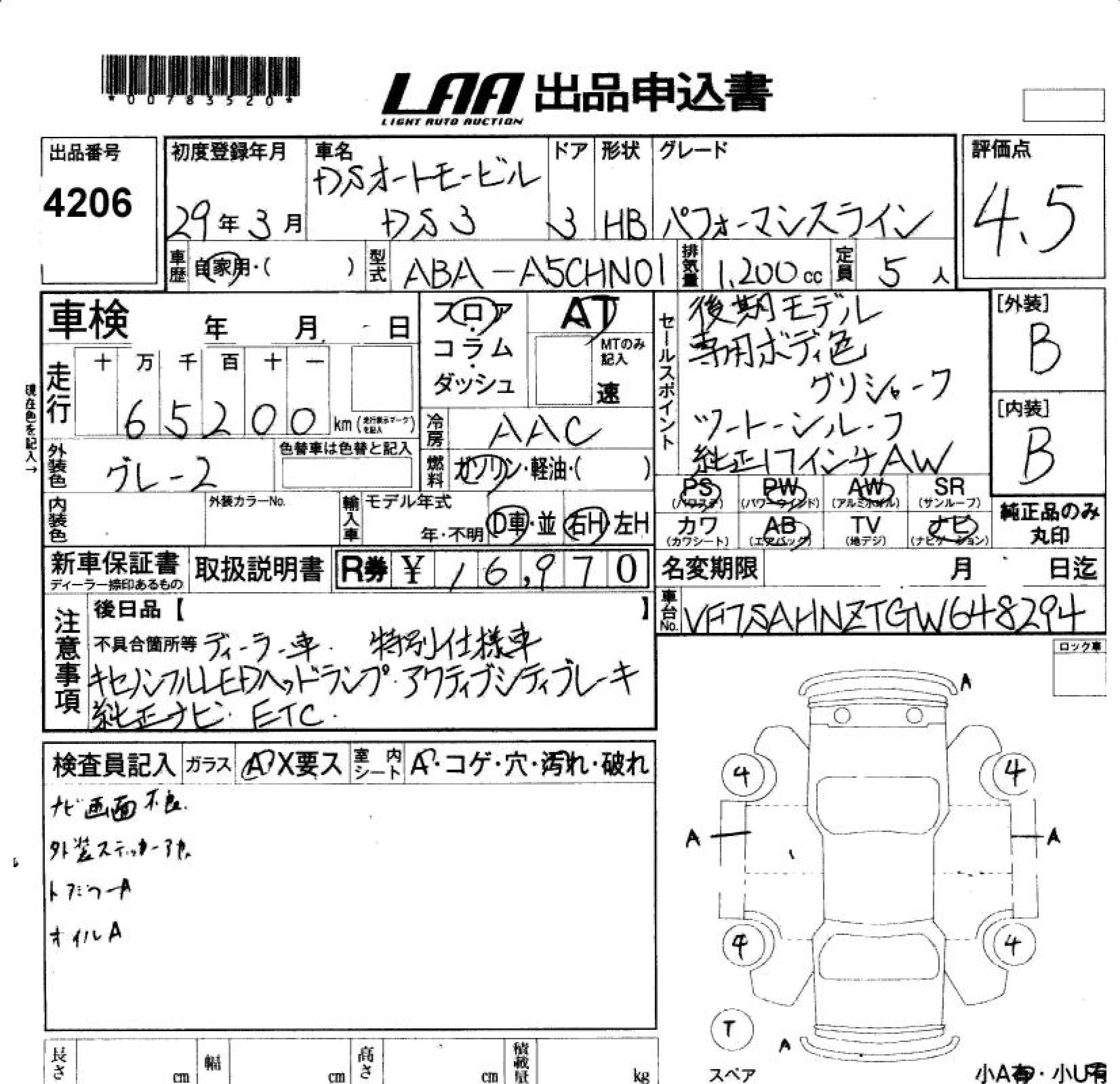 Статус не продан Лот 4206 Аукцион LAA Okayama Дата аукциона 23.01.2026