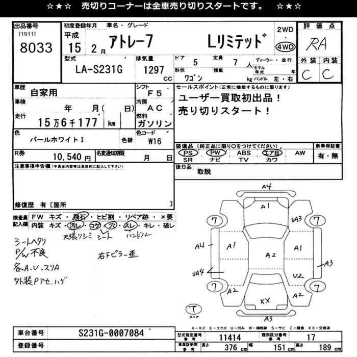 Год выпуска2003 Пробег 156 000 км КузовS231G Комплектация4WD L LTD