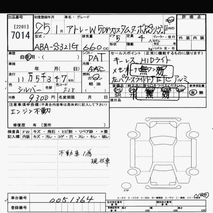 DAIHATSU ATRAI WAGON 2013 г., лот № 7014