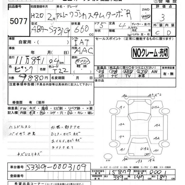Статус продан Лот 5077 Аукцион JU Chiba Дата аукциона 21.11.2025