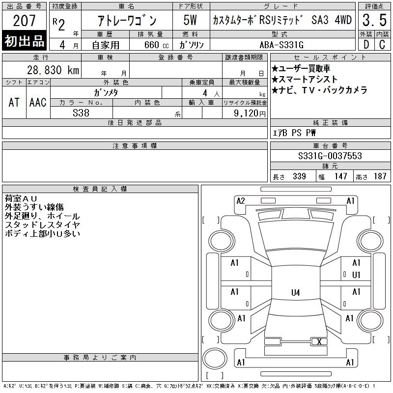 Объем660 сс Трансмиссия Автомат Привод 4WD Оценка3.5