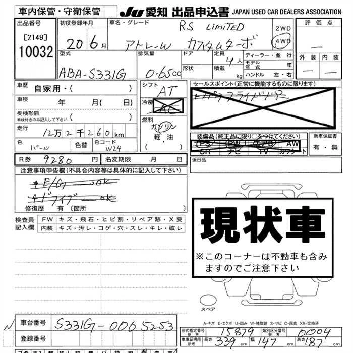 Статус выставлен на аукцион Лот 10032 Аукцион JU Aichi Дата аукциона 12.03.2026