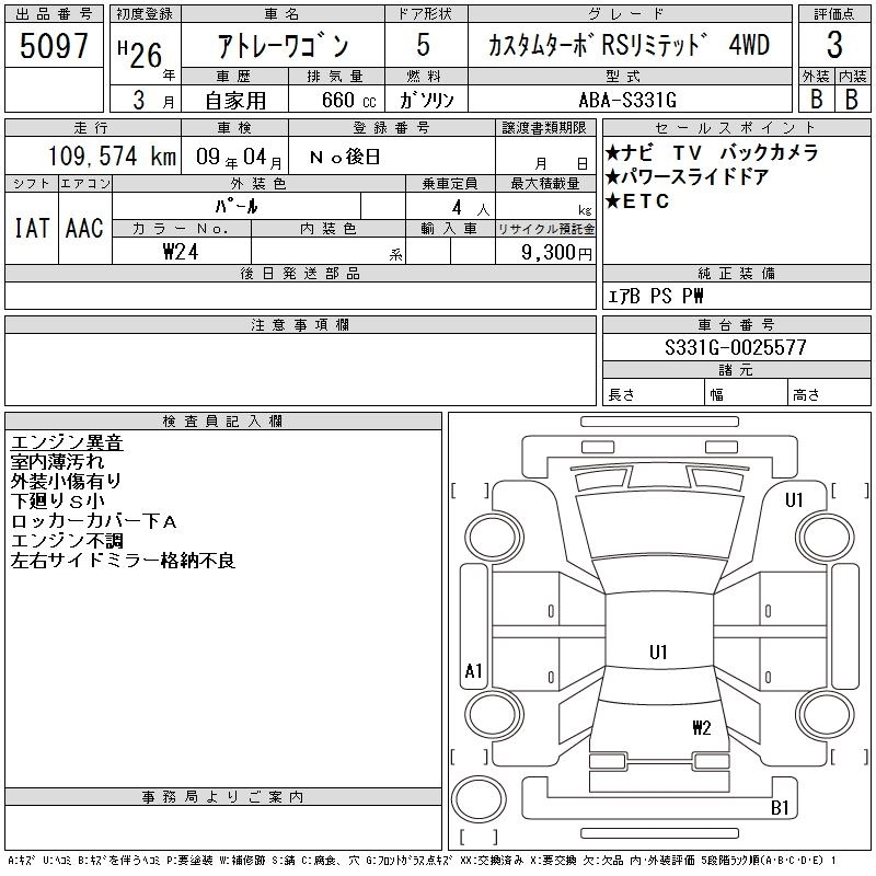 110 000 км КузовS331G Комплектация CUSTOM TURBO RS LIMITED 4WD