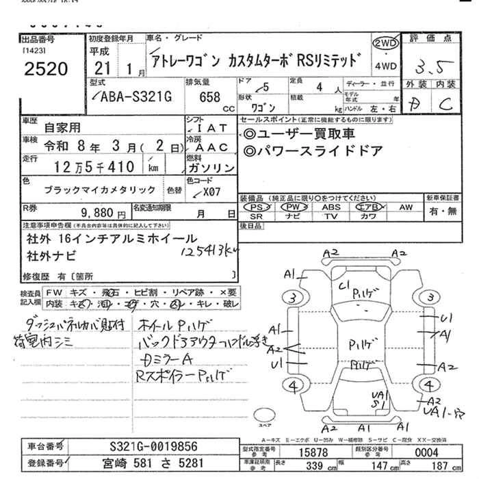 Год выпуска2009 Пробег 125 000 км КузовABA-S321G Комплектация CUSTOM TURBO RS LIMITED 2WD