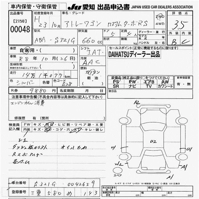 Статус выставлен на аукцион Лот 48 Аукцион JU Aichi Дата аукциона 19.03.2026