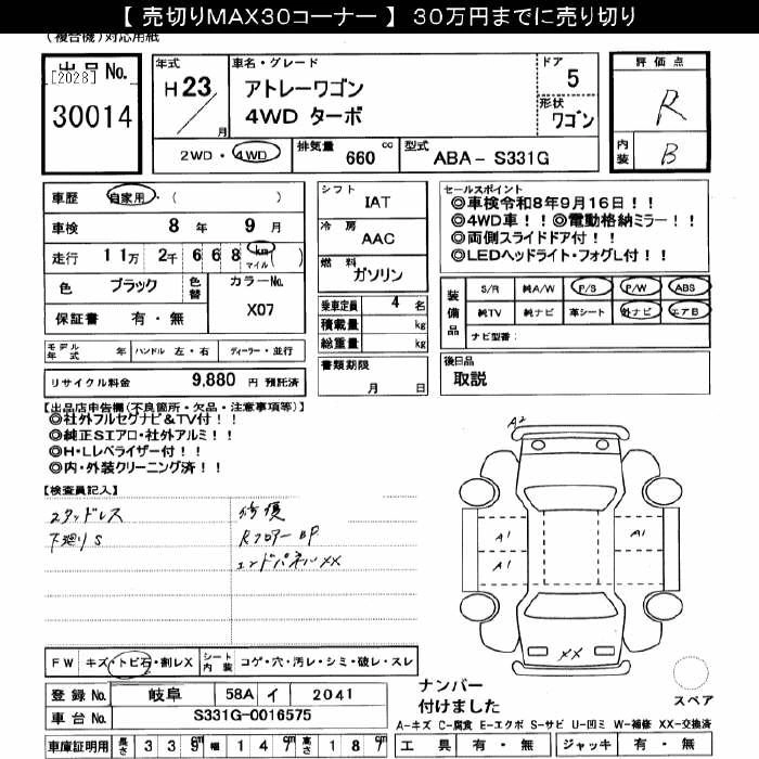 Год выпуска2011 Пробег 112 000 км КузовS331G Комплектация4WD TURBO
