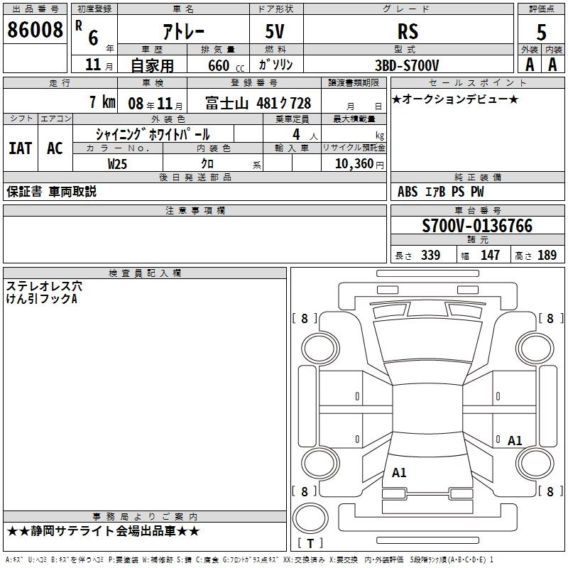 Статус выставлен на аукцион Лот 86008 Аукцион TAA Chubu Дата аукциона 12.03.2026
