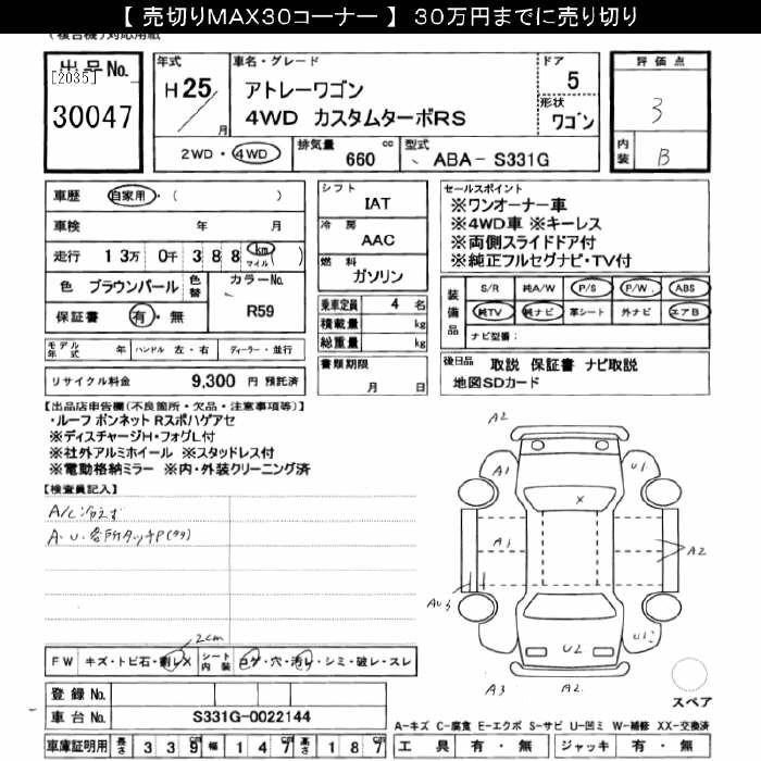 Год выпуска2013 Пробег 130 000 км КузовS331G Комплектация4WD CUSTOM TURBO RS