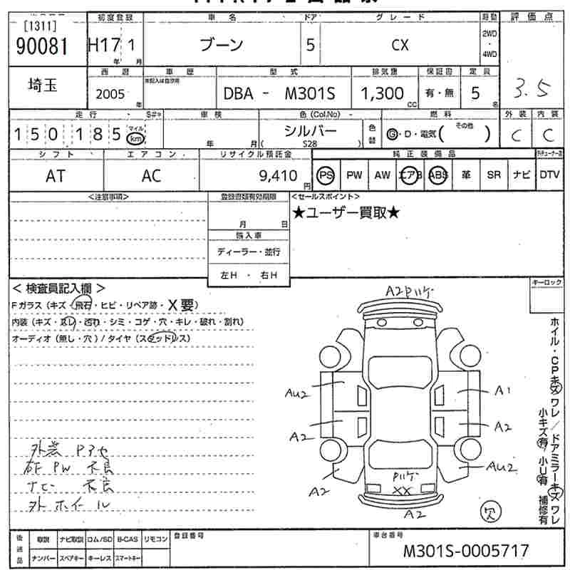 Год выпуска2005 Пробег 150 000 км КузовM301S КомплектацияCX