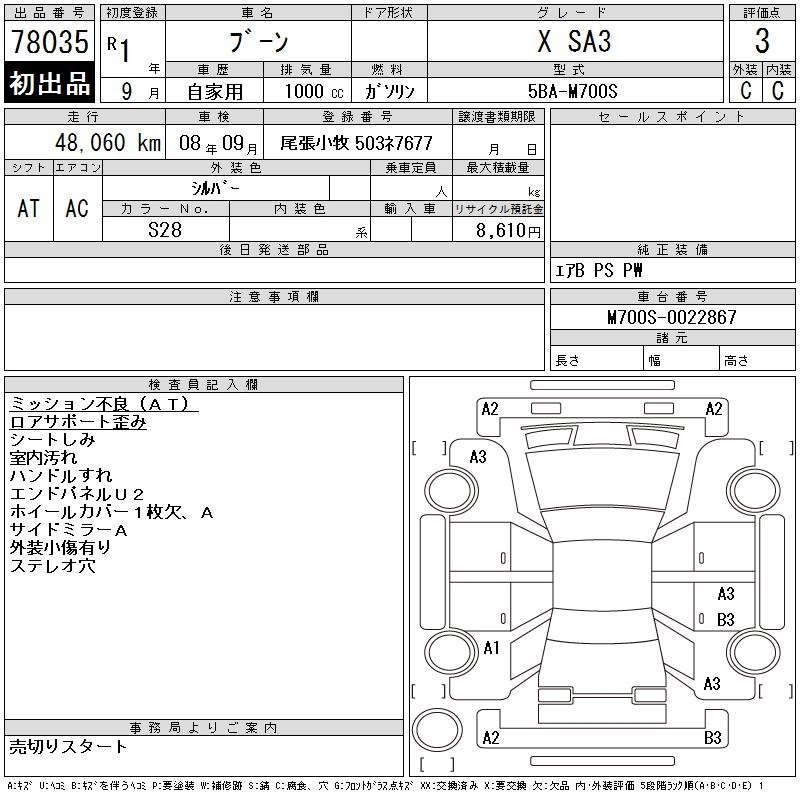 Статус выставлен на аукцион Лот 78035 Аукцион CAA Gifu Дата аукциона 27.01.2026