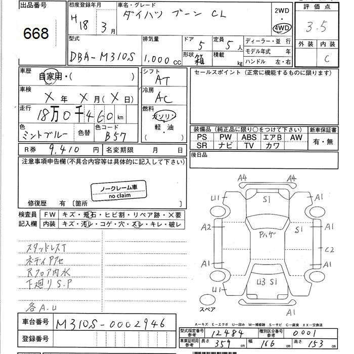 DAIHATSU BOON 2006 г., лот № 668