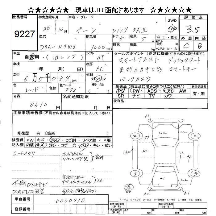 Статус выставлен на аукцион Лот 9227 Аукцион JU Hokkaido Дата аукциона 13.03.2026