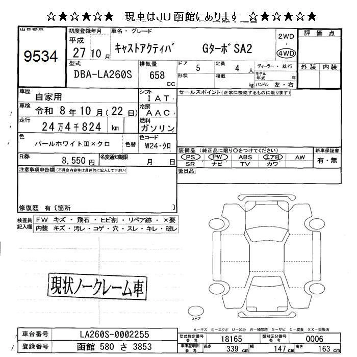 Статус продан Лот 9534 Аукцион JU Hokkaido Дата аукциона 23.01.2026