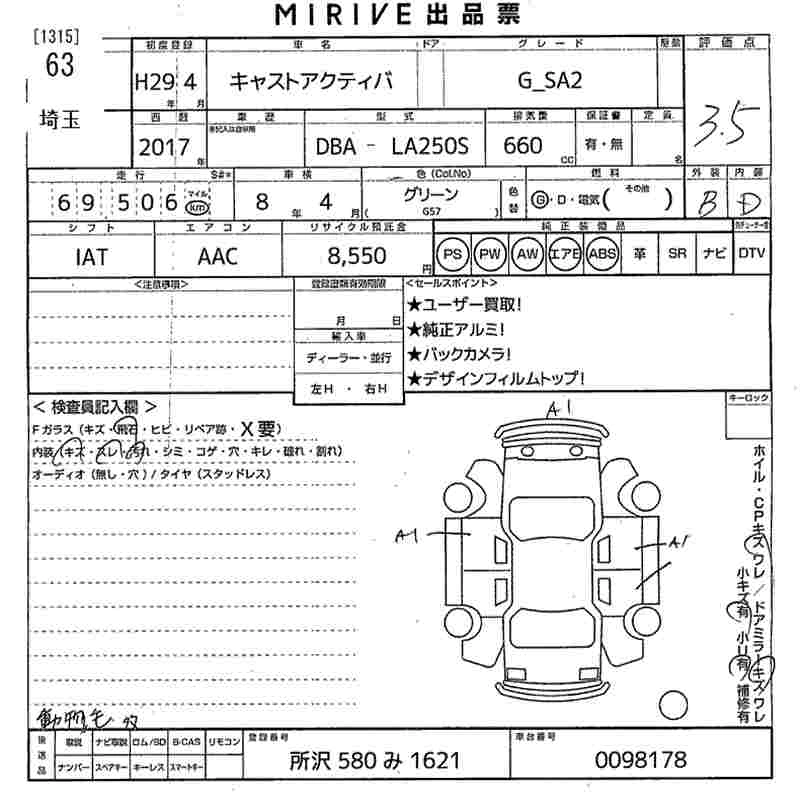 Статус выставлен на аукцион Лот 63 Аукцион MIRIVE Saitama Дата аукциона 28.01.2026