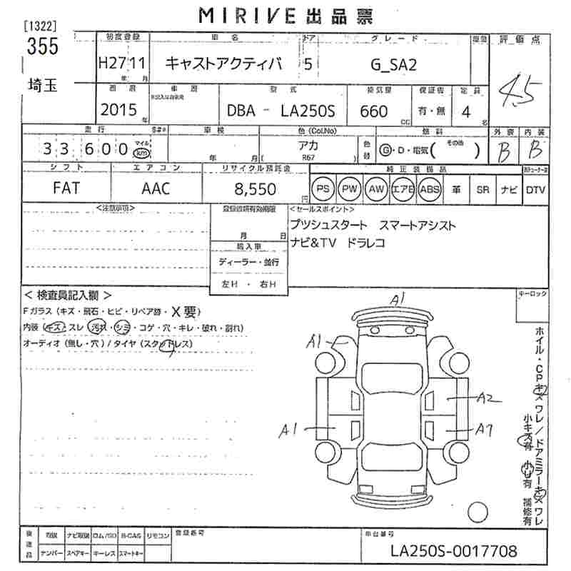 Статус выставлен на аукцион Лот 355 Аукцион MIRIVE Saitama Дата аукциона 18.03.2026