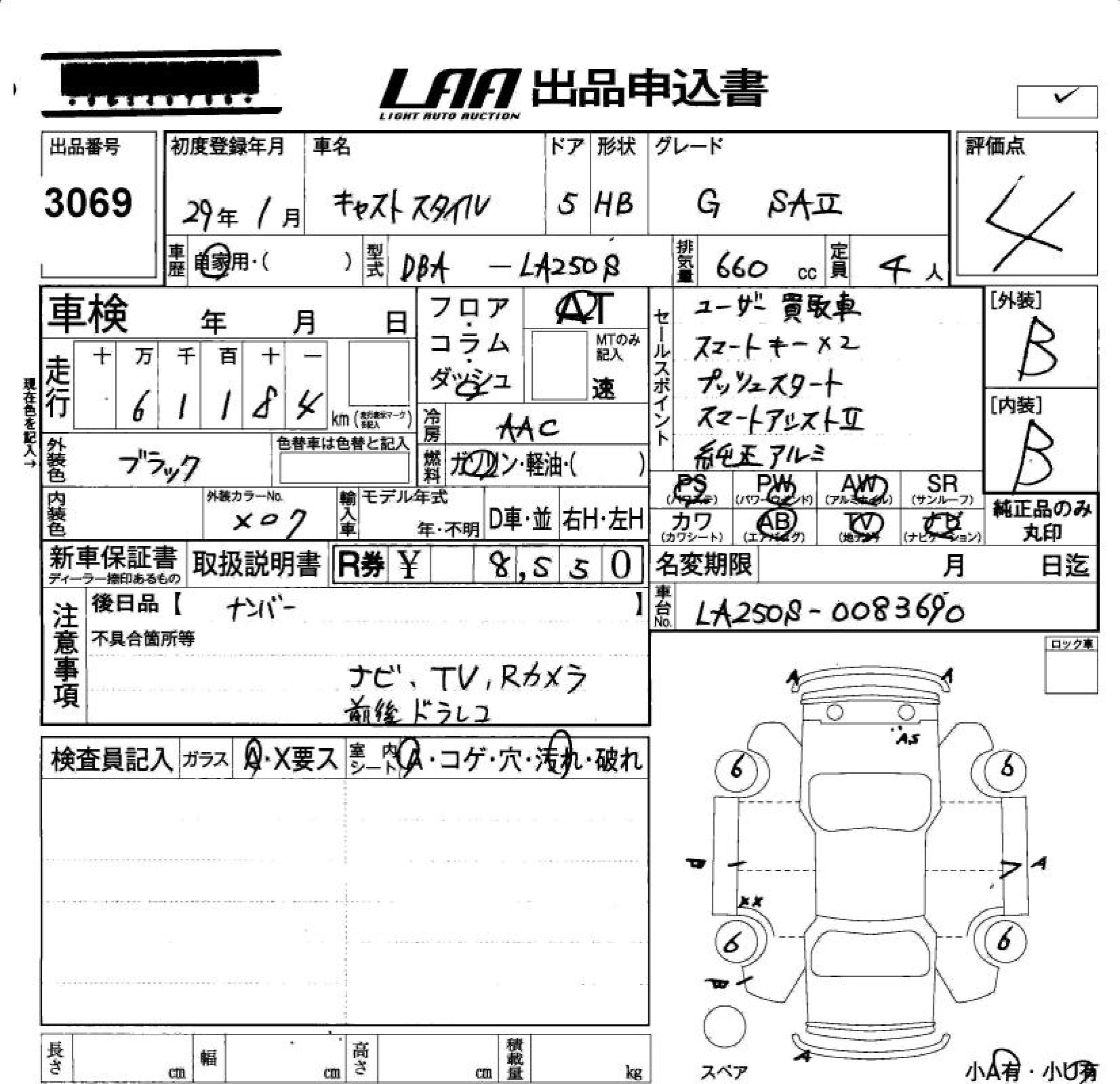Статус не продан Лот 3069 Аукцион LAA Okayama Дата аукциона 23.01.2026