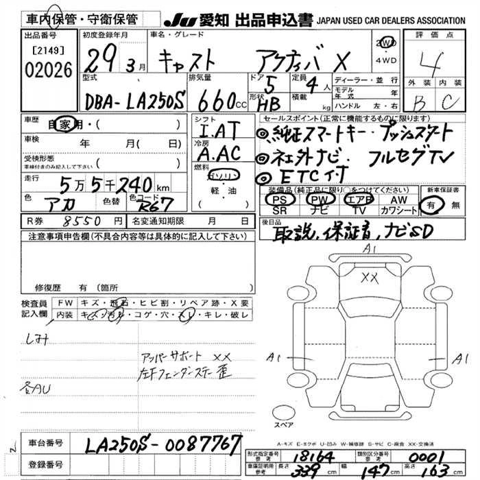 Статус выставлен на аукцион Лот 2026 Аукцион JU Aichi Дата аукциона 12.03.2026