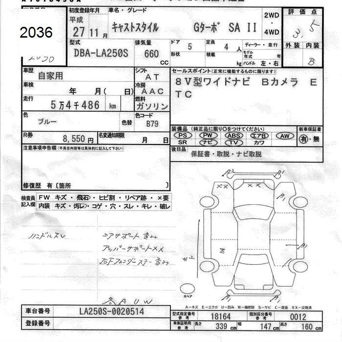Статус выставлен на аукцион Лот 2036 Аукцион JU Toyama Дата аукциона 12.03.2026