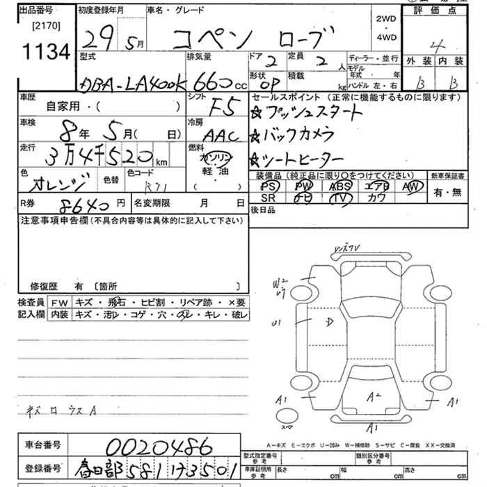 DAIHATSU COPEN 2017 г., лот № 1134
