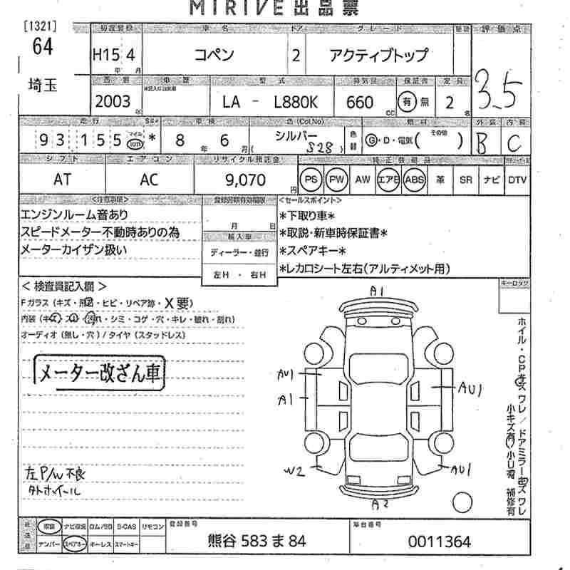 Статус выставлен на аукцион Лот 64 Аукцион MIRIVE Saitama Дата аукциона 11.03.2026