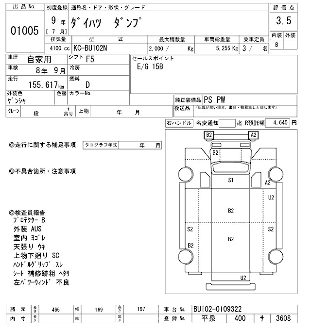 Год выпуска1997 Пробег 156 000 км КузовBU102N Комплектация DUMP