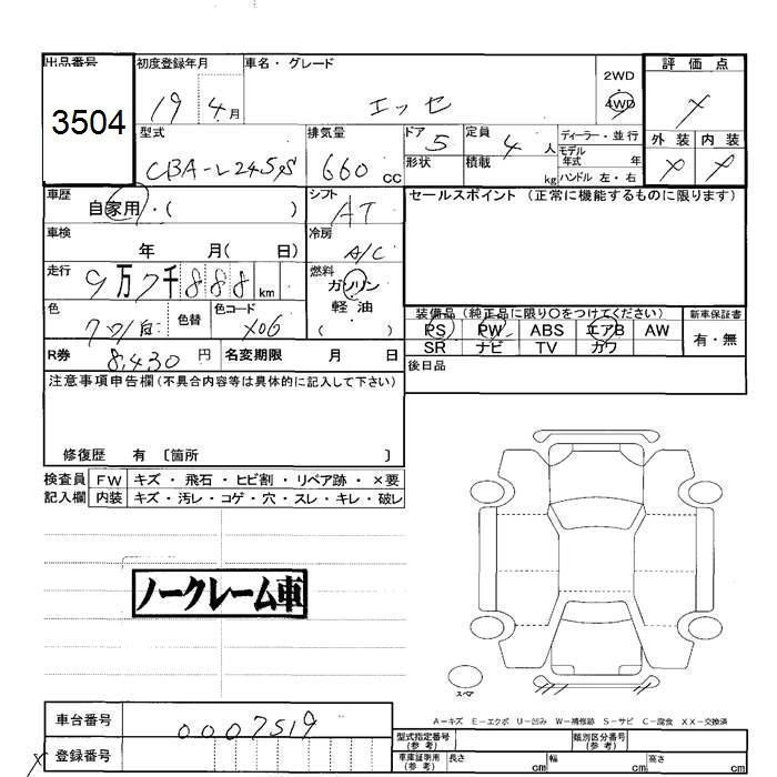 DAIHATSU ESSE 2007 г., лот № 3504