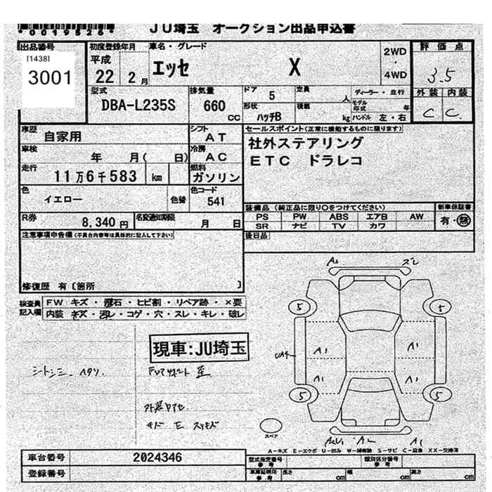 DAIHATSU ESSE 2010 г., лот № 3001
