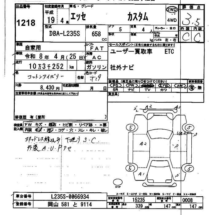 DAIHATSU ESSE 2007 г., лот № 1218
