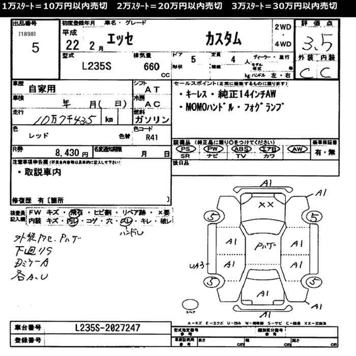 Стартовая цена авто на аукционе 10 000 ¥