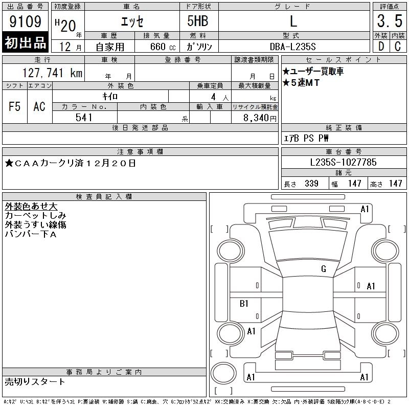 Статус выставлен на аукцион Лот 9109 Аукцион CAA Chubu Дата аукциона 24.12.2025