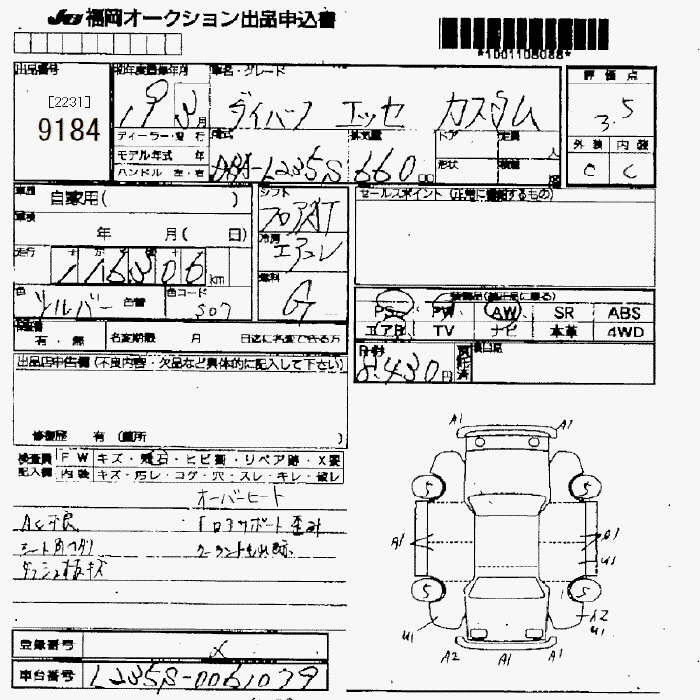 Статус не продан Лот 9184 Аукцион JU Fukuoka Дата аукциона 23.01.2026