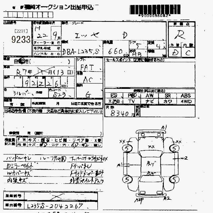 Статус не продан Лот 9233 Аукцион JU Fukuoka Дата аукциона 23.01.2026
