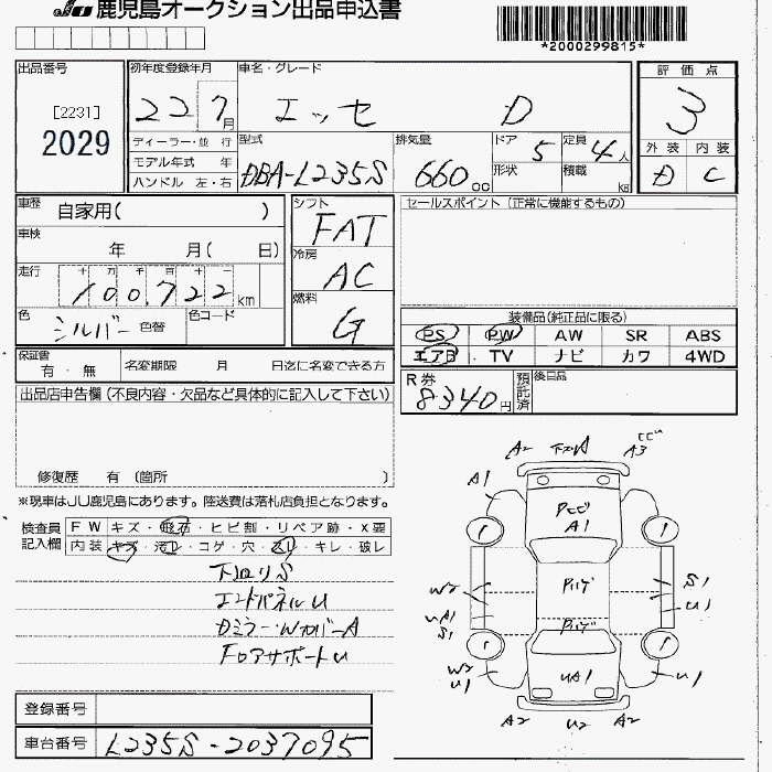 DAIHATSU ESSE 2010 г., лот № 2029