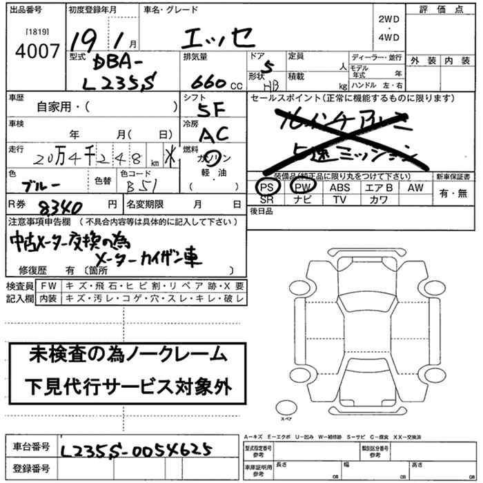 DAIHATSU ESSE 2007 г., лот № 4007
