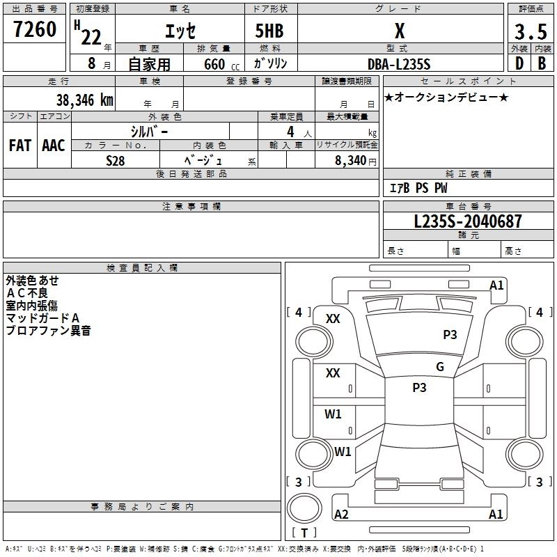 DAIHATSU ESSE 2010 г., лот № 7260