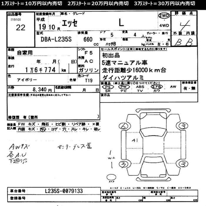 Стартовая цена авто на аукционе 30 000 ¥