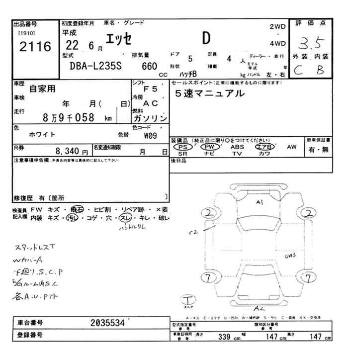 DAIHATSU ESSE 2010 г., лот № 2116