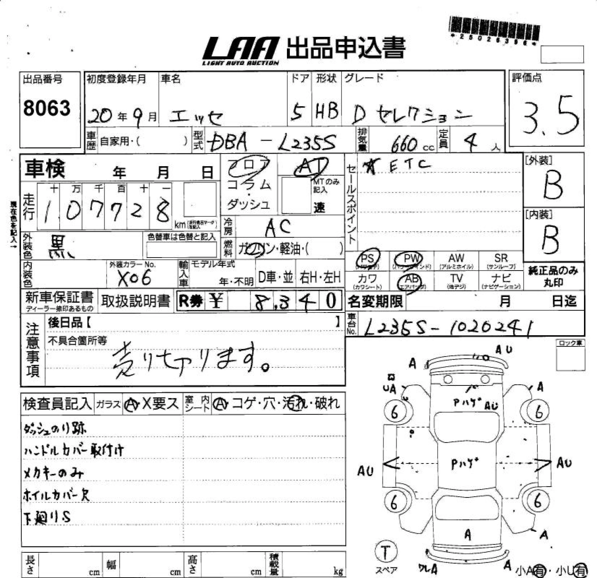 Статус выставлен на аукцион Лот 8063 Аукцион LAA Shikoku Дата аукциона 11.03.2026