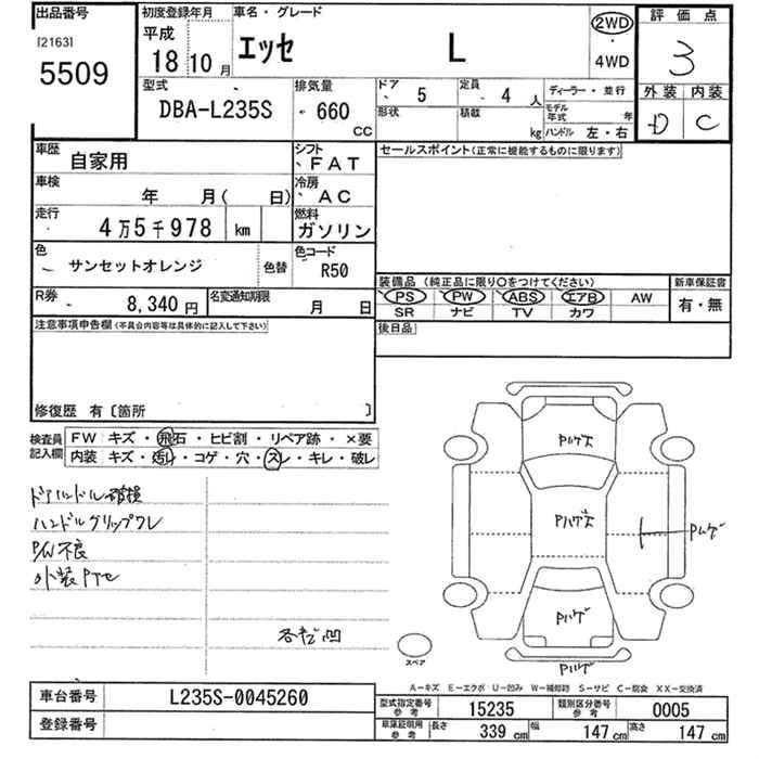 DAIHATSU ESSE 2006 г., лот № 5509
