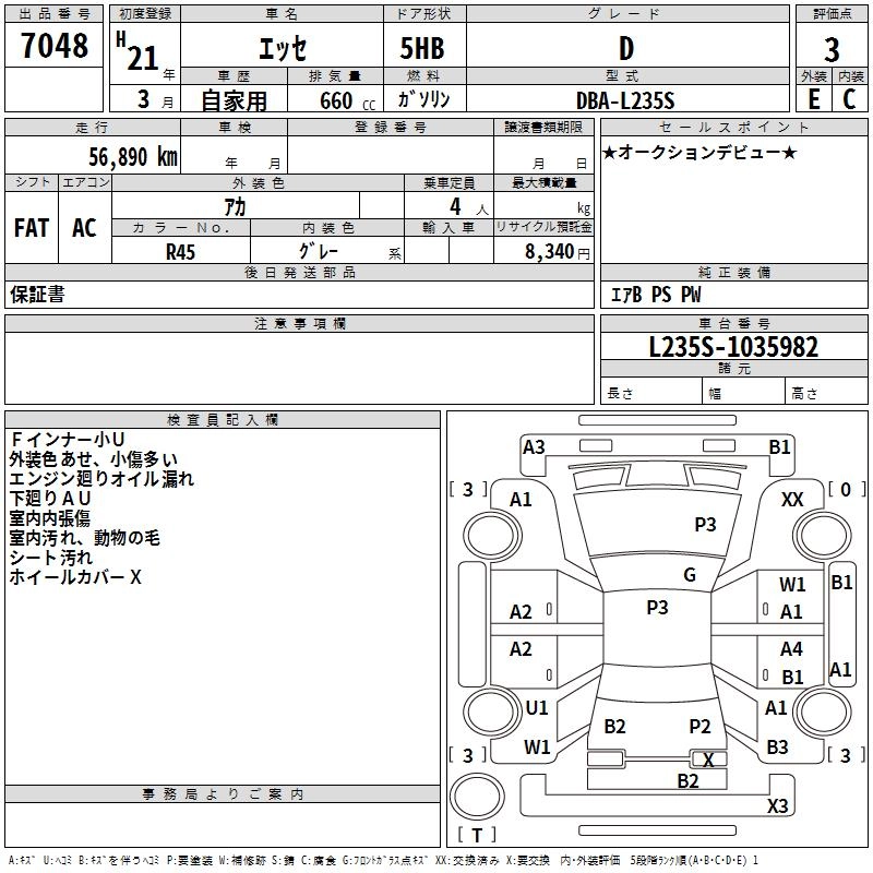 DAIHATSU ESSE 2009 г., лот № 7048