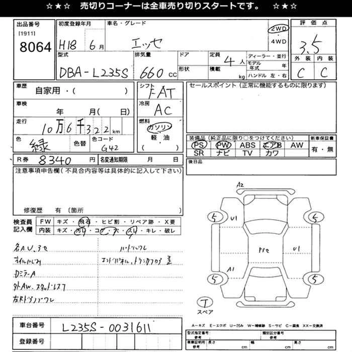 DAIHATSU ESSE 2006 г., лот № 8064