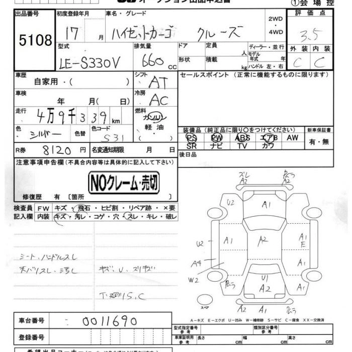 DAIHATSU HIJET CARGO 2005 г., лот № 5108
