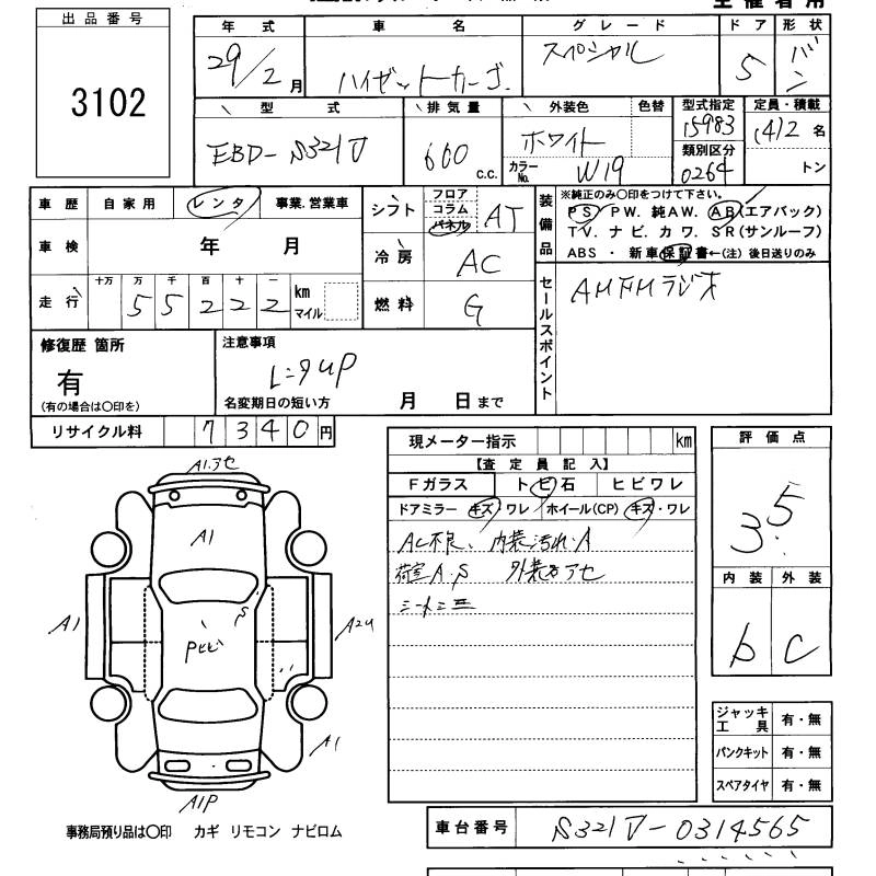 Статус не продан Лот 3102 Аукцион KCAA M Kyushu Дата аукциона 29.10.2025
